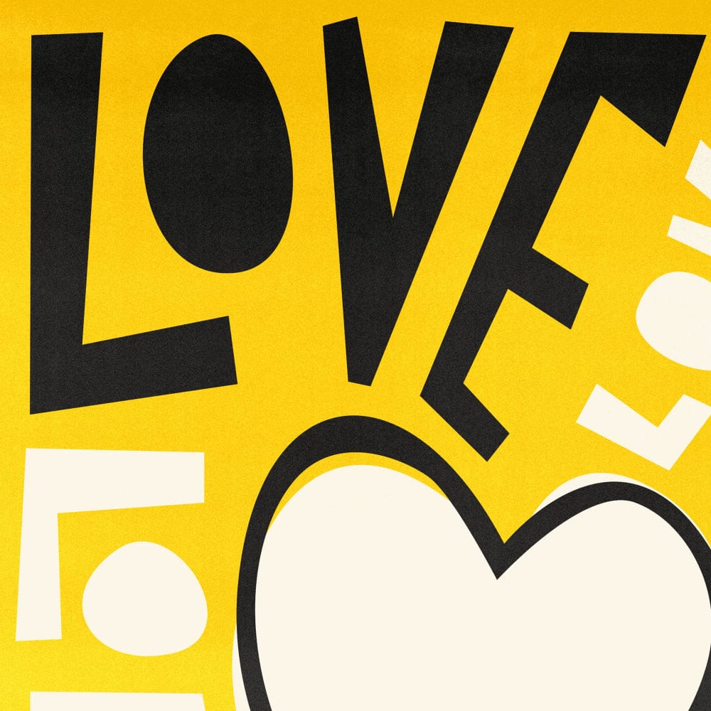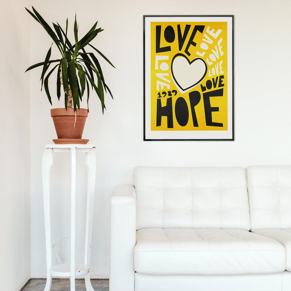 With bold yellow tones and our distinctive typography, our love and hope motivational poster draws from retro poster influences to offer a clear, uplifting message. It works beautifully in a kitchen, hallway, or creative space.
