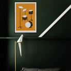 This drum kit print strips percussion down to its essential shapes. Inspired by classic jazz mid-century posters and album covers, it works well in creative spaces or dining rooms. Pairs effortlessly with our Brass Instruments or Guitar prints.