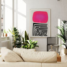 A soft-edged block of magenta sits above a black and white zigzag pattern. Our Labyrinth abstract art print balances loose and precise elements in a way that feels relaxed but deliberate. Strong enough to stand alone as a large piece of wall art, or mix with our other abstract pieces.