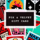 - Gift cards can be used for any Fox & Velvet product (www.foxandvelvet.com only), and can be used in conjunction with discounts.